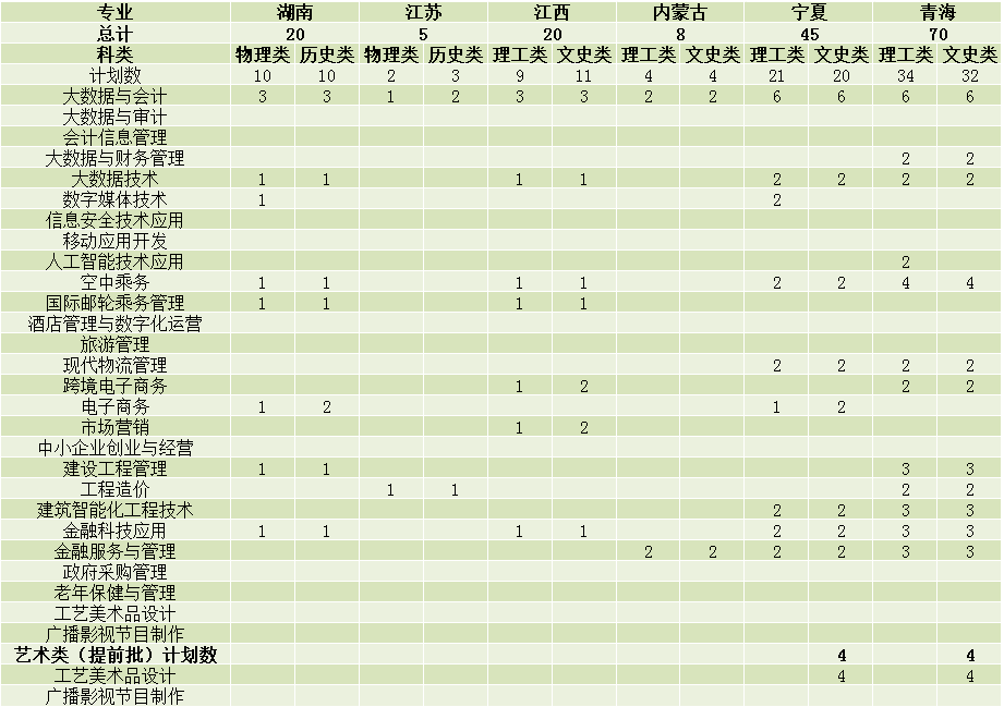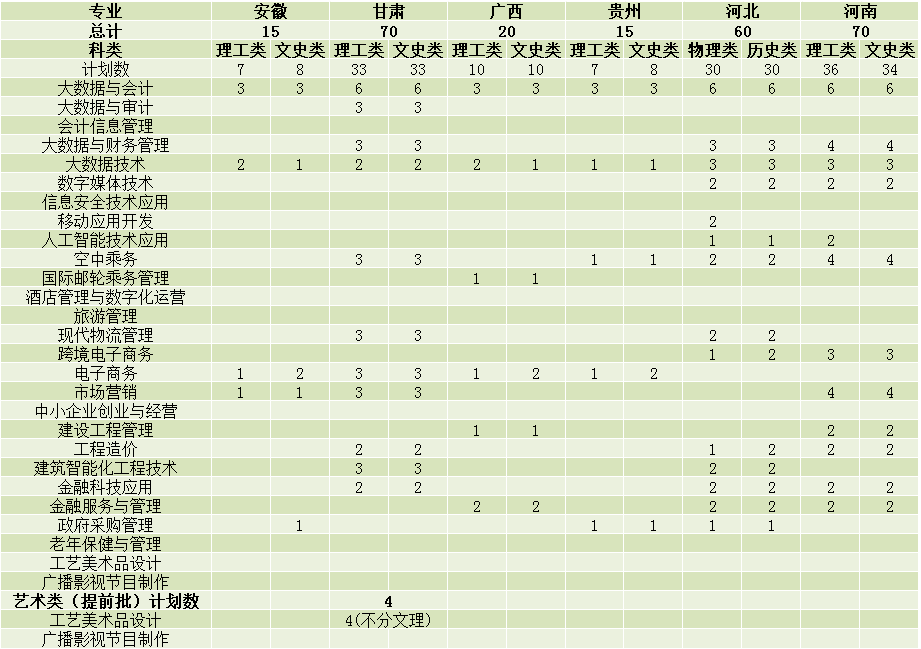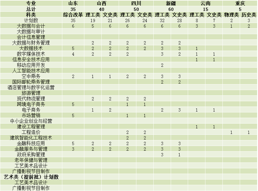 其他省份共招生专科计划为623名
