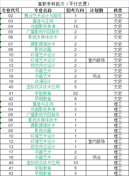 高职专科批次招生专业计划一览表