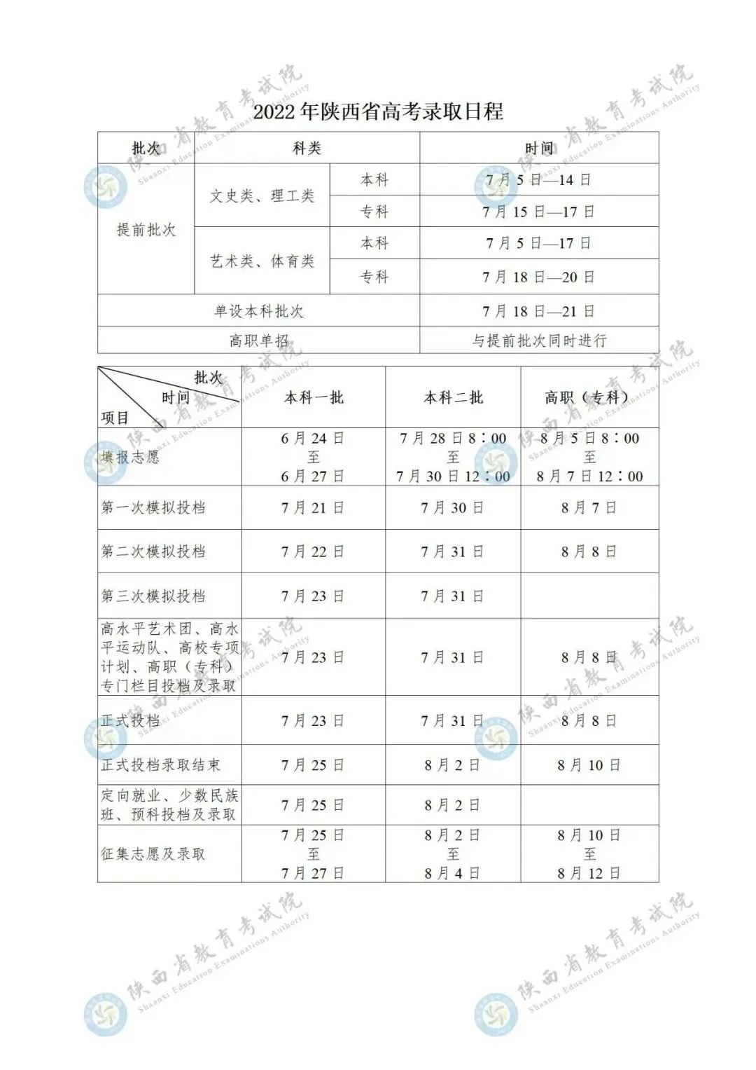 每晚24点后,请各位考生对照2022年陕西高考录取日程安排,通过“陕西考试招生”微信订阅号和新浪微博确认自己所报考的志愿批次已经投档后,再查询本人的档案轨迹和录取信息。