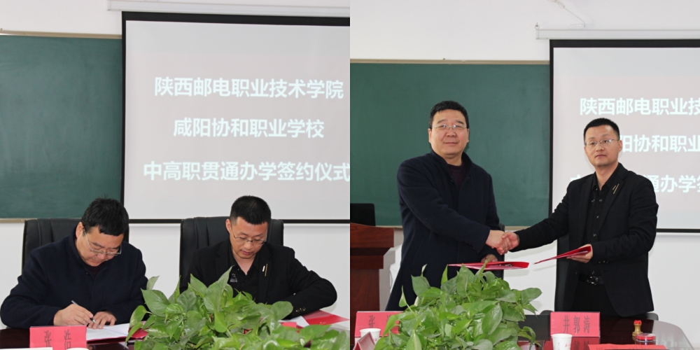 陕西邮电职业技术学院副院长张浩、咸阳协和职业学校校长井郭涛签署了中高职贯通培养协议。