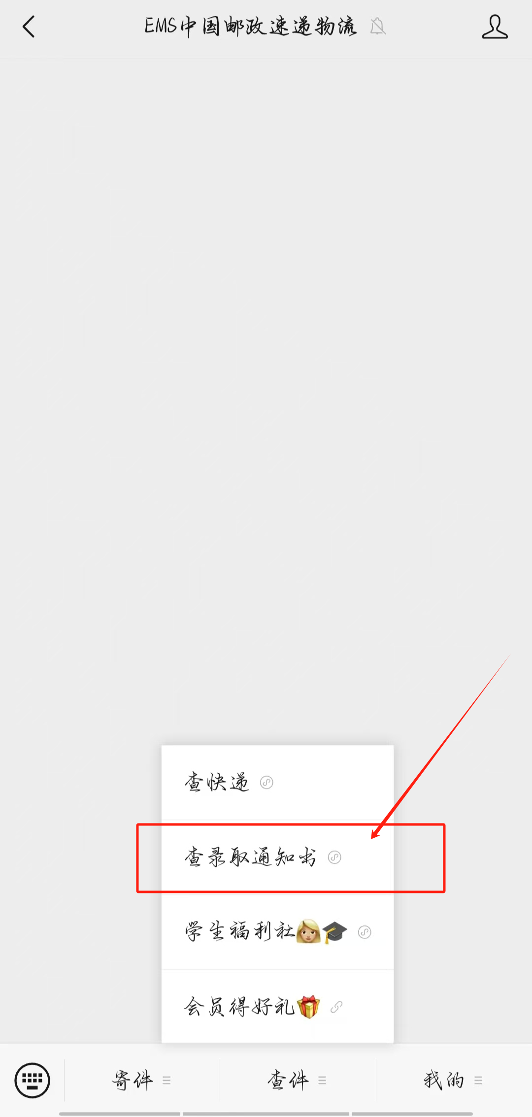 微信搜索“EMS中国邮政速递物流”公众号,输入快递单号可查询物流信息。