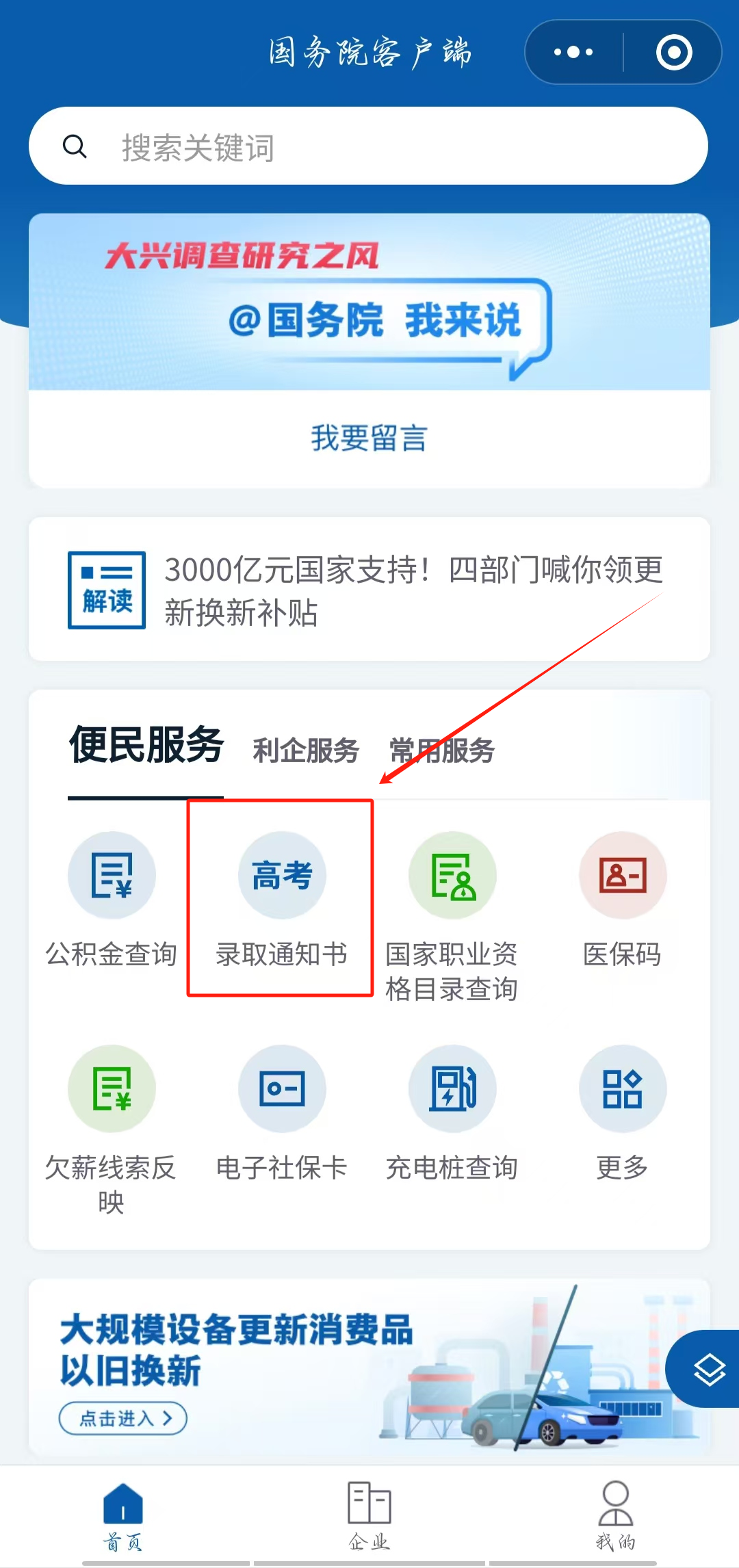 微信搜索“国务院客户端”小程序,输入快递单号可查询物流信息。
