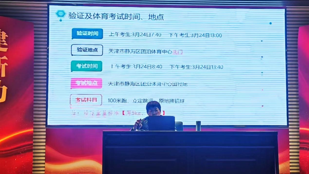 为深入贯彻落实党的二十大精神,全面贯彻党的教育方针,促进教育公平,加强学院招生考试治理体系和治理能力建设,确保学院2024年天津市高职分类招生体育考试工作安全、有序进行。根据市教委、市教育招生考试院关于招生考试工作的有关规定,3月21日中午,学院组织召开了2024年天津市高职分类招生体育考试培训会,学院领导班子、全体考务工作人员、志愿者参加会议。会议由分管招生工作副院长潘政彬主持。