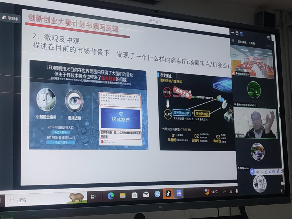 为提升我院学生的职业生涯规划能力和创新创业意识,激发学生的创新潜能和创业热情,10月23日招生就业处特邀山东浪潮科苑数字科技有限公司培训总监,山东省职业院校创业学院联盟高级创业指导师王冬亮,通过腾讯会议开展了第二届职业生涯规划大赛指导及双创大赛计划书撰写培训。