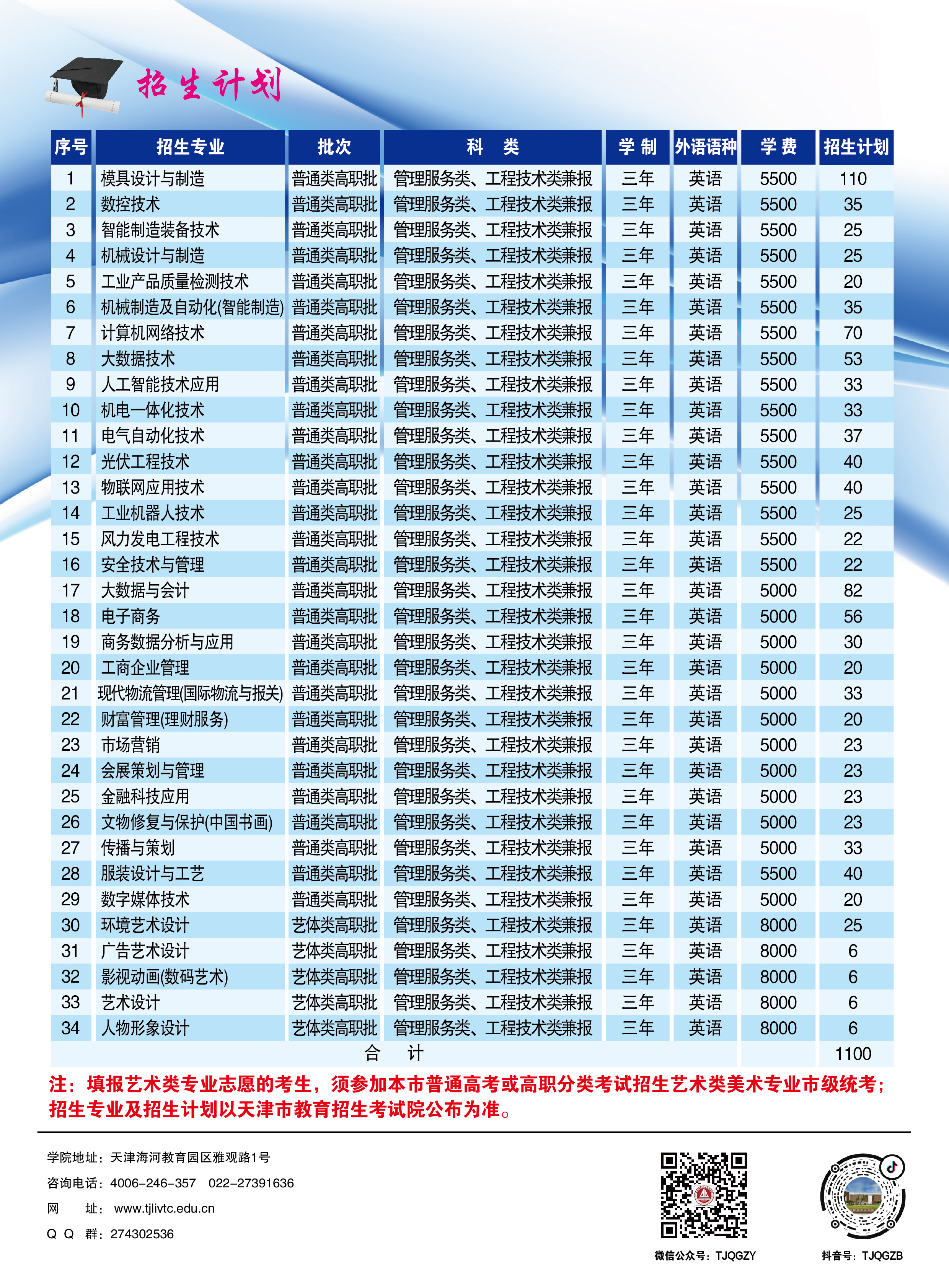 天津轻工职业技术学院2023年高职分类考试招收中职毕业生招生计划