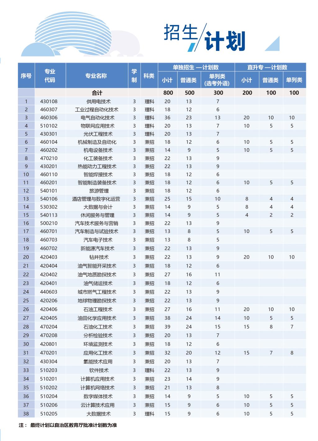 克拉玛依职业技术学院2024年单独招生、直升专招生简章