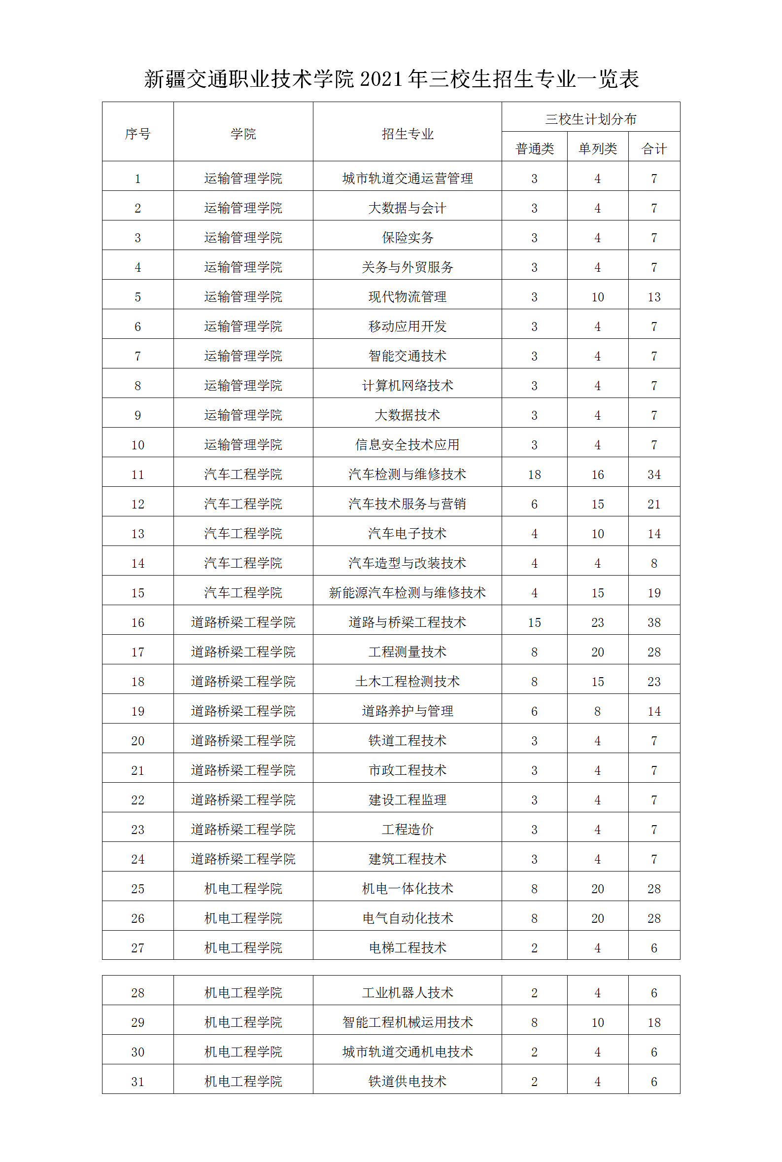 学院坐落于首府乌鲁木齐市米东区,占地853亩,建筑面积25.6万平方米,馆藏图书 66.46万册;校园绿树成荫,鸟语花香,环境优美,誉有“最美校园”之称;建有校内实训基地共计30个,实训室109间,资产总值8097.21万元,与企业合作建立校外实训基地228个;校内已建成万兆核心、万兆主干、千兆到桌面、网络全覆盖的高质量校园网,校园网络覆盖所有教学区域和学生活动区域。学院开设有与交通运输行业紧密相关的道路与桥梁工程技术、铁道工程技术、城市轨道交通机电技术、汽车检测与维修技术等38个高职专业,其中国家骨干专业10个,自治区特色专业9个,与本科院校联办5个应用本科专业。学院现有专职教师385人,其中高级职称102人,中级职称184人,博士研究生9人,硕士研究生217人,在读博士研究生33人,“双师”素质教师272人,交通部命名的专业带头人2名。获得全国优秀教师1名,全国教学名师1名,全国交通运输职业教育教学名师2名,黄炎培教学名师奖3人,自治区级教学名师2人,自治区级教学能手3人。