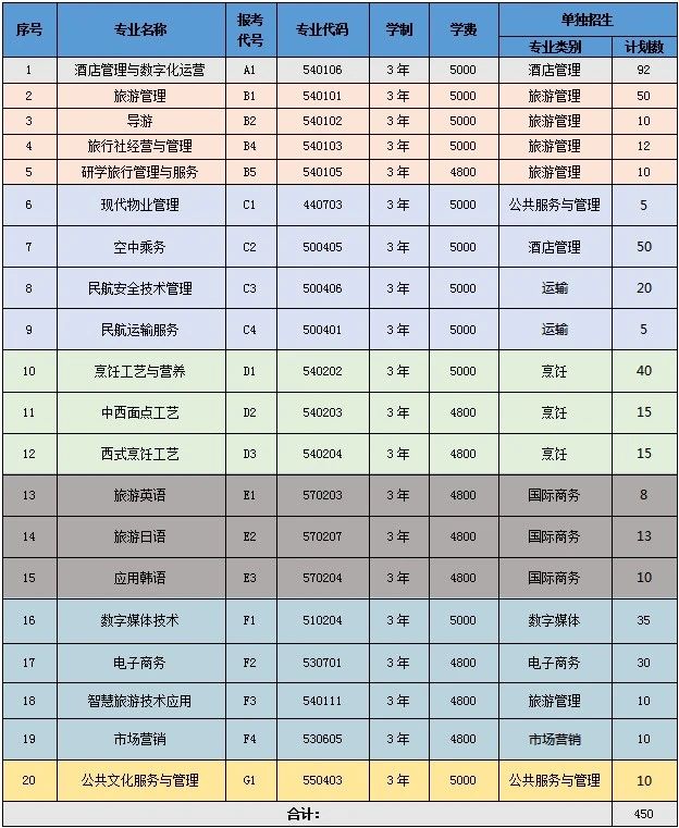 山东旅游职业学院2024年单独招生(普通类)计划450人、综合评价招生计划200人,总计划650人,具体分专业计划以山东省教育厅审核为准。