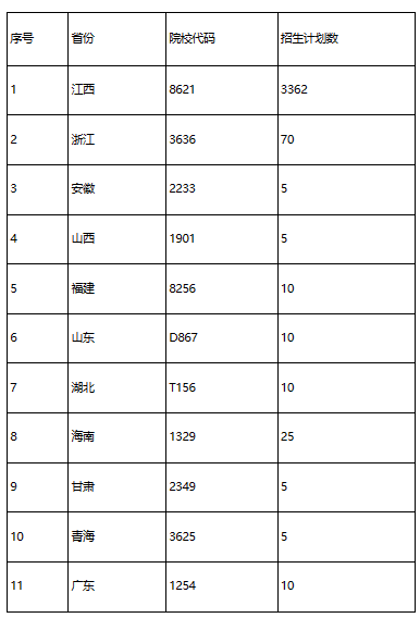 江西制造职业技术学院2022年统招各省招生代码、招生计划一览表