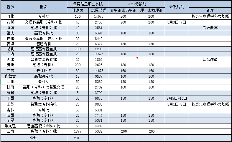 2021年云南省高职院校招收“三校生”