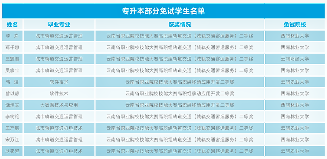 应届专科毕业生可参加云南省普通专升本考试,专科学习第三年学校组织专升本考试考前培训,报名参加云南省专升本考试。考试通过后,可升入云南省内有普通专升本招生计划的本科院校就读,经过两年的本科学习,成绩合格者可获得本科院校颁发的全日制本科毕业证书和学士学位证书。