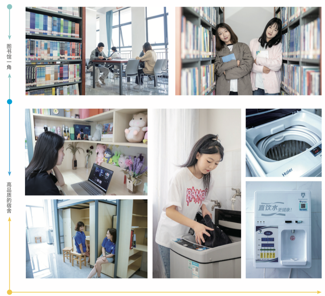 学校为学生提供一流的设施与服务,采用南京大学先进的净化技术将安全的直饮水直通宿舍,每间宿舍配备洗衣机,热水24小时不间断供应,宿舍还设置了宽敞的会客厅、阅读室、咖啡吧、休闲室、书吧等场景。校内还配备有健身房、咖啡工厂、生活超市、自助取款机等便捷服务设施,能够全方位、立体式地满足学生学习生活的各种需要。