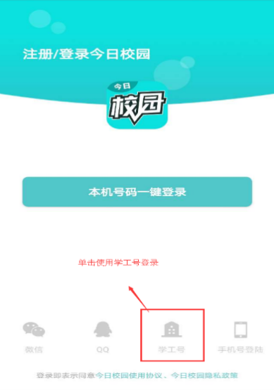 安装好后,在手机中就有今日校园,点击打开,点【登录】按钮,弹出的界面右下角点击【学工号】,在【搜索】栏中输入 云南林业职业技术学院进行搜索,点击搜索出来的“云南林业职业技术学院”后,打开登录界面。