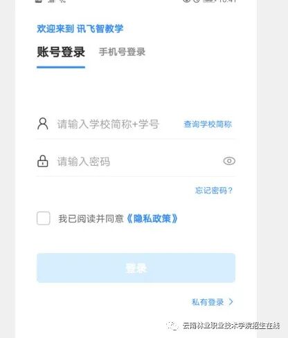 (一)监考手机2操作1.考生于考试前15分钟打开手机讯飞智教学APP,输入登录账号和密码,点击“我已阅读并同意《隐私政策》”点击“登录”。