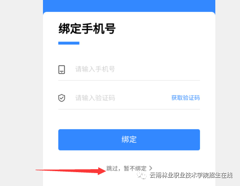 2.绑定手机号选择“跳过,暂不绑定!!!”。