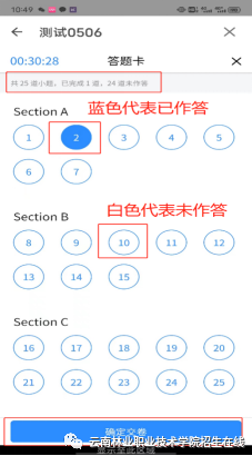 云南林业职业技术学院2024年单独考试招生“三校生文化素质考试”(笔试)(2部手机)操作说明及使用指南