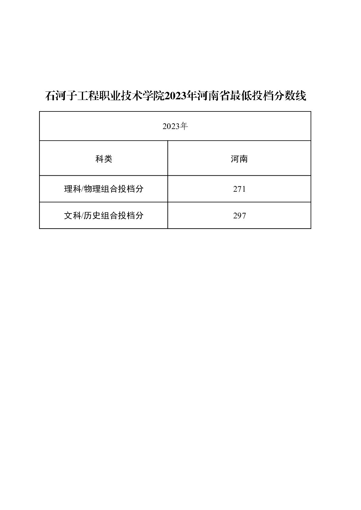 石河子工程职业技术学院2023年河南省最低投档分数线