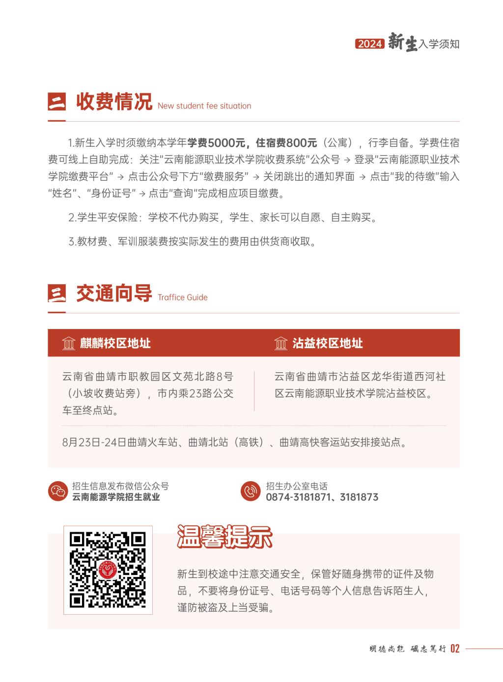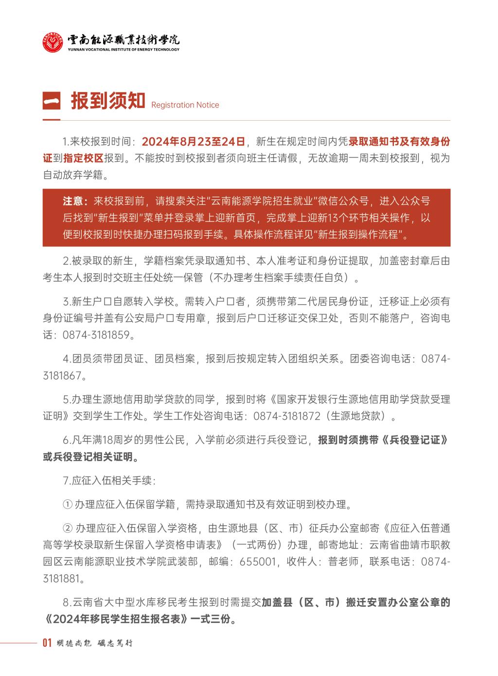 云南能源职业技术学院2024年三年制大专新生入学须知