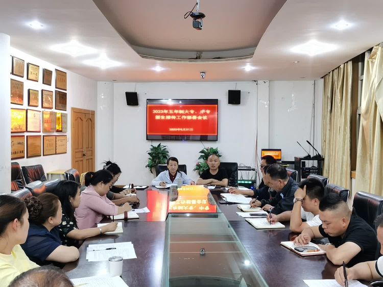 根据《云南新兴职业学院关于2023年招生工作的通知》要求,以及学校招生工作的实际情况,为做好学校2023年五年制大专、中专的新生接待工作,保证迎新各项工作井然有序、优质高效,确保做到“热情、周到、安全、卓效”,顺利完成今年的招生计划,提前准备好招生接待工作。在学校分管招生工作副校长潘琼的组织下,于2023年6日21日20:00在水海子校区行政楼二楼会议室召开了2023年五年制大专、中专新生接待工作安排部署会,副校长潘琼、董事长助理杨林述、水海子校区管委会主任武正文、招生办主任李加磊等相关部门中层干部参加了会议。