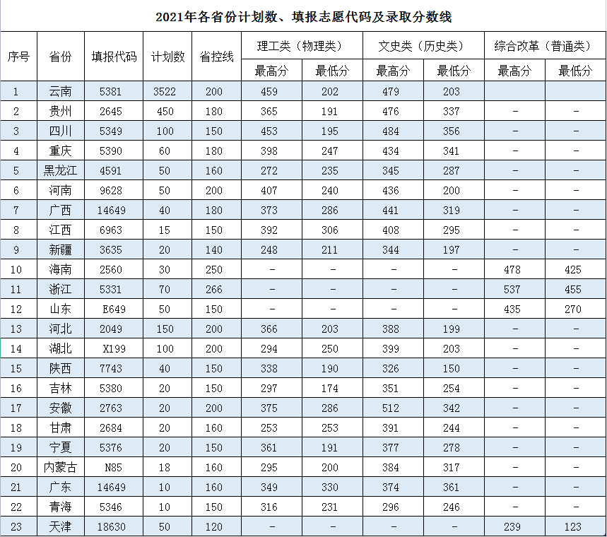 2021年各省份录取分数