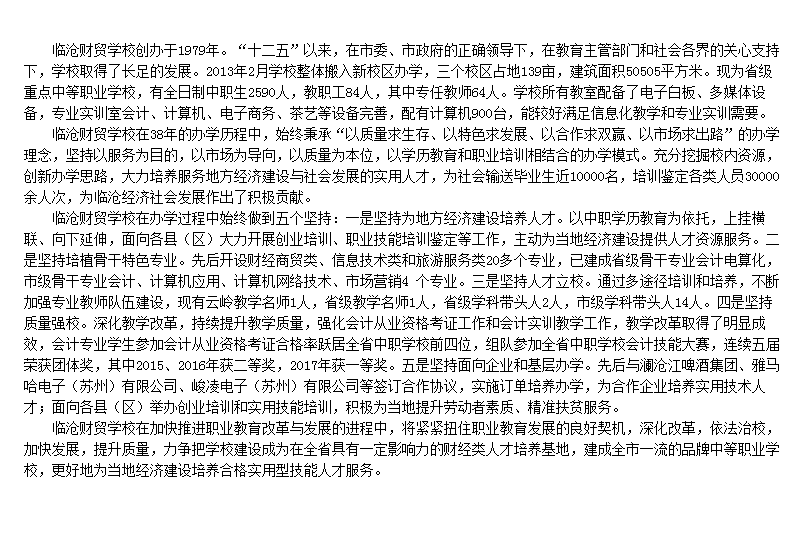 五年制联合办学点——临沧财贸学校简介