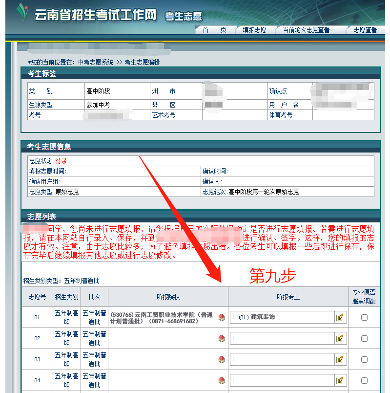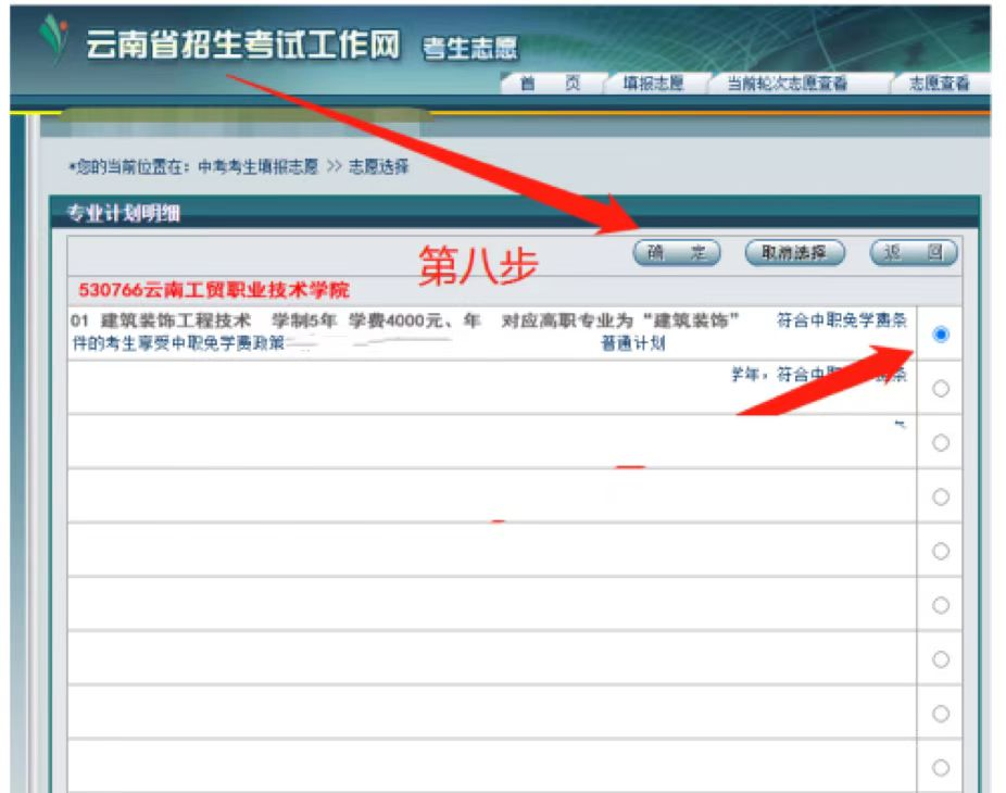 9、检查自己所填报的院校名称和专业名称是否正确。