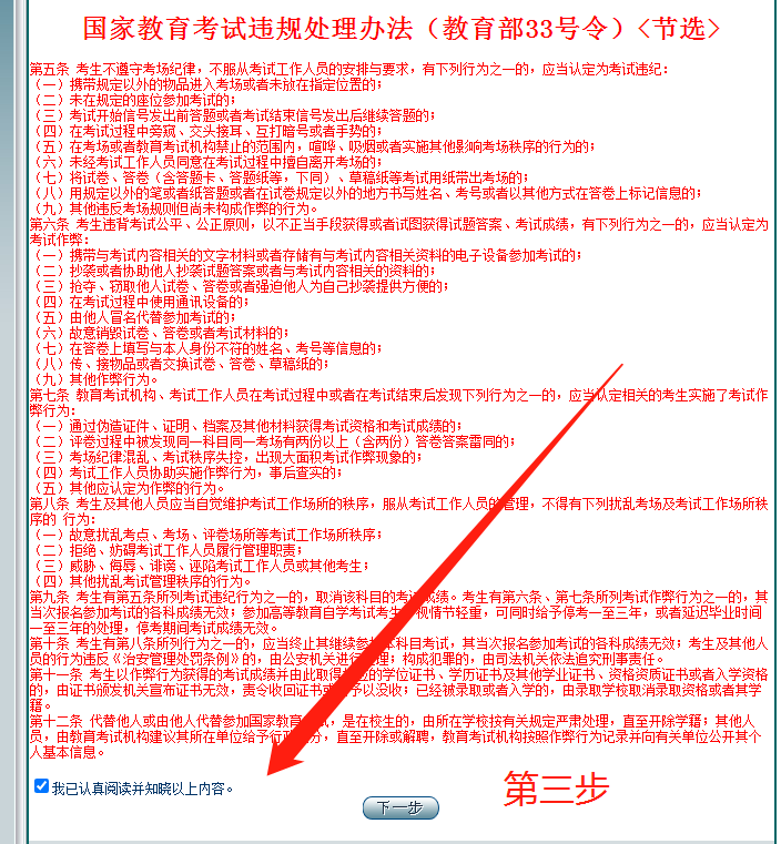 3、勾选“我已认真阅读并知晓以上内容”,点击“下一步”。