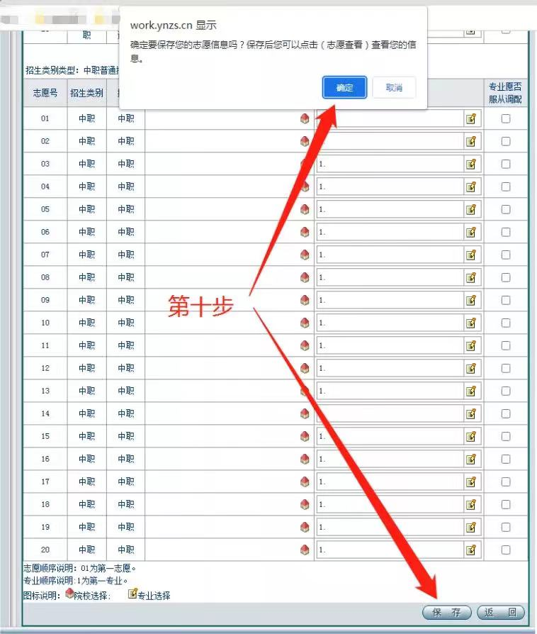 10继续按提示点击页面最下方的“保存”按钮,完成志愿填报。