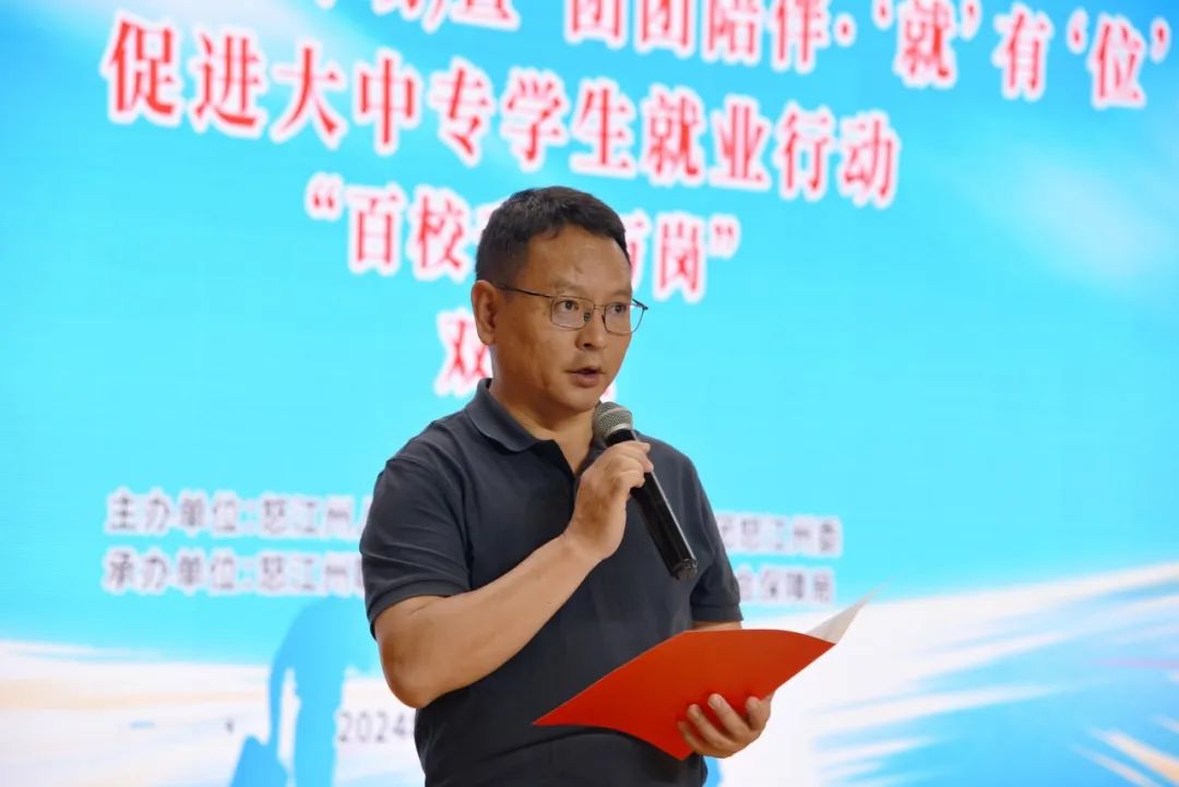 招聘会在州职教中心报告厅开启。校党委委员、副校长张红军首先介绍了参会单位、企业,鼓励参加招聘会的滇西应用技术大学怒江学院、怒江州民族中专、怒江州技工学校2024届大中专毕业生积极与企业对接洽谈,认真规划职业生涯,及时就业,顺利就业。校党委副书记、校长张雪梅致辞,对参会单位、企业表示感谢,全面介绍了州职教中心的就业举措;鼓励毕业生与用人单位双向奔赴、双向选择。州人社局副局长和明远对招聘工作提出要求,希望各参加单位、企业不断提高毕业生就业服务力度,珍惜政府搭建的平台,希望毕业生树牢“先就业、再择业”的观念,并预祝此次招聘会取得圆满成功。团州委副书记李强龙宣布招聘会正式启动。