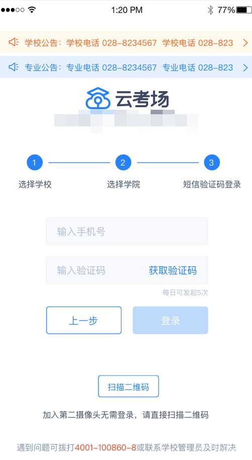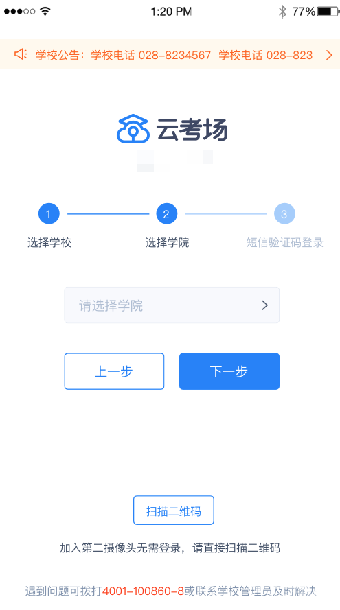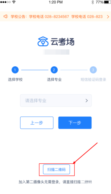 - 使用第二部手机打开“云考场”App,并点击“扫描二维码”按钮扫描该二维码