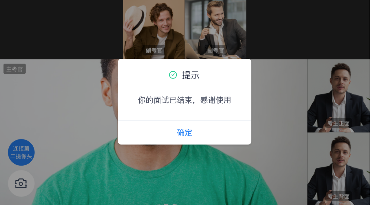 第二摄像头3、考后- 面试结束时,考生会收到面试结束提醒