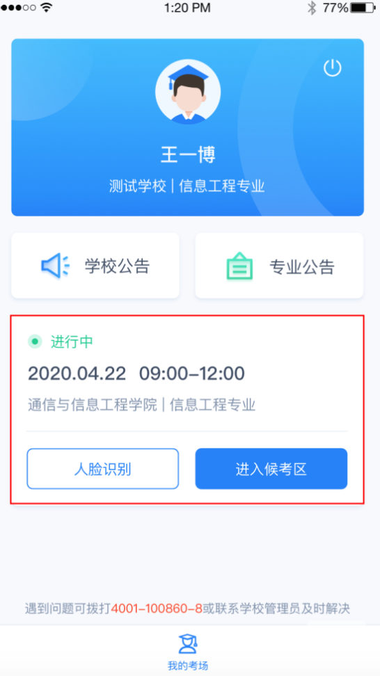 第四步:核对考场- 查看考场的日期时间、考场名称等信息,若有疑问及时跟学校管理员取得联系