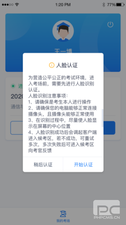 2、考中第一步:人脸识别- 点击人脸识别按钮