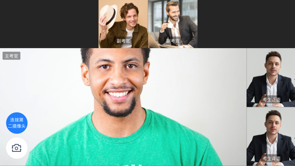 - 若以第一摄像头加入,则显示下图画面。当候考官与考生开启通话后,考生可与候考官进行音视频交流