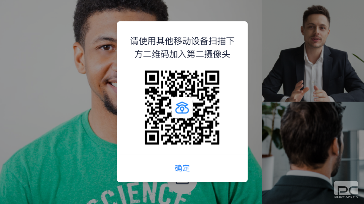 第三步:加入第二摄像头- 在第一摄像头画面上点击“连接第二摄像头”按钮,会显示二维码