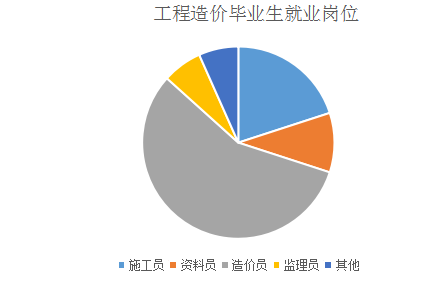 根据对本专业应往届毕业生以及对相关企业进行的问卷调研结果显示,就业岗位有造价员、资料员、施工员、监理员。其中,毕业生就业岗位最多的是造价员,其次是资料员和施工员,如下图所示。