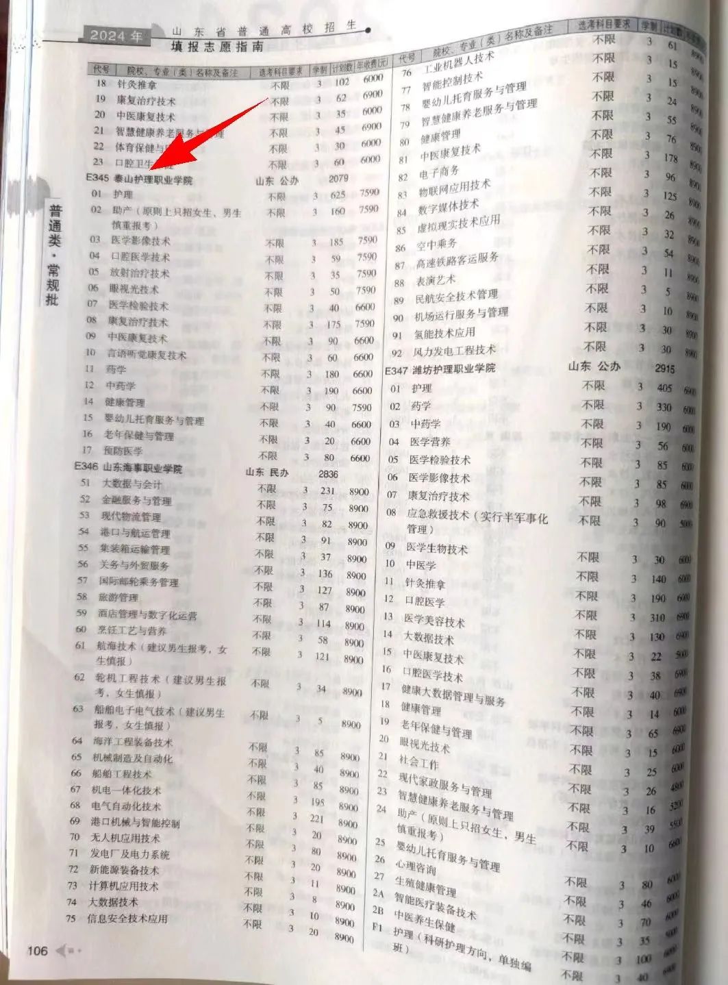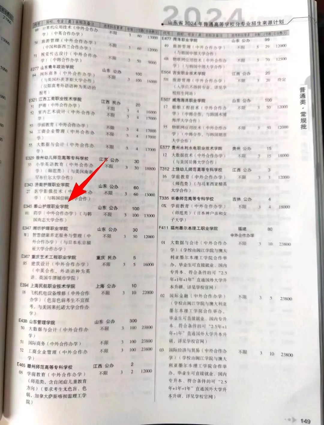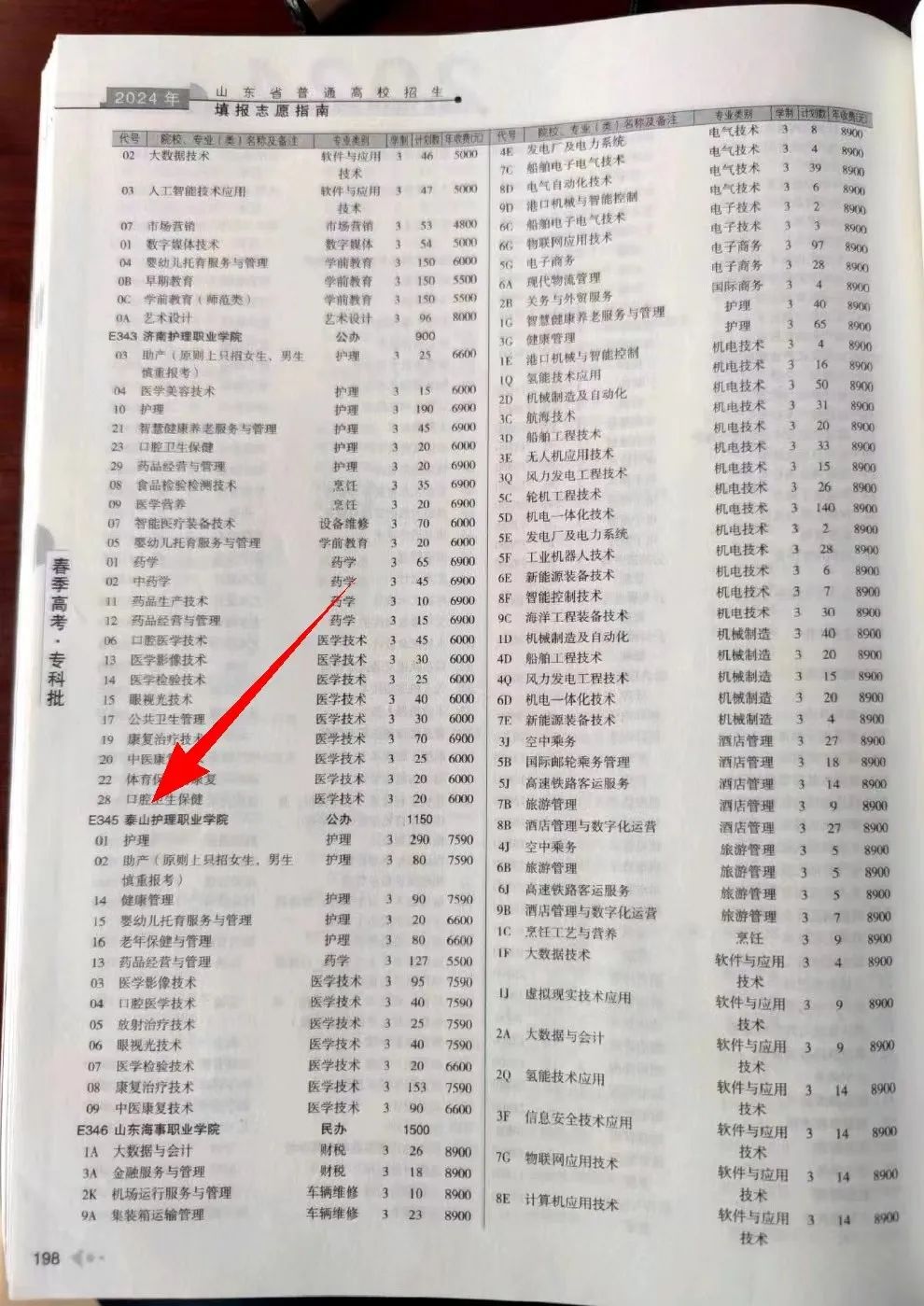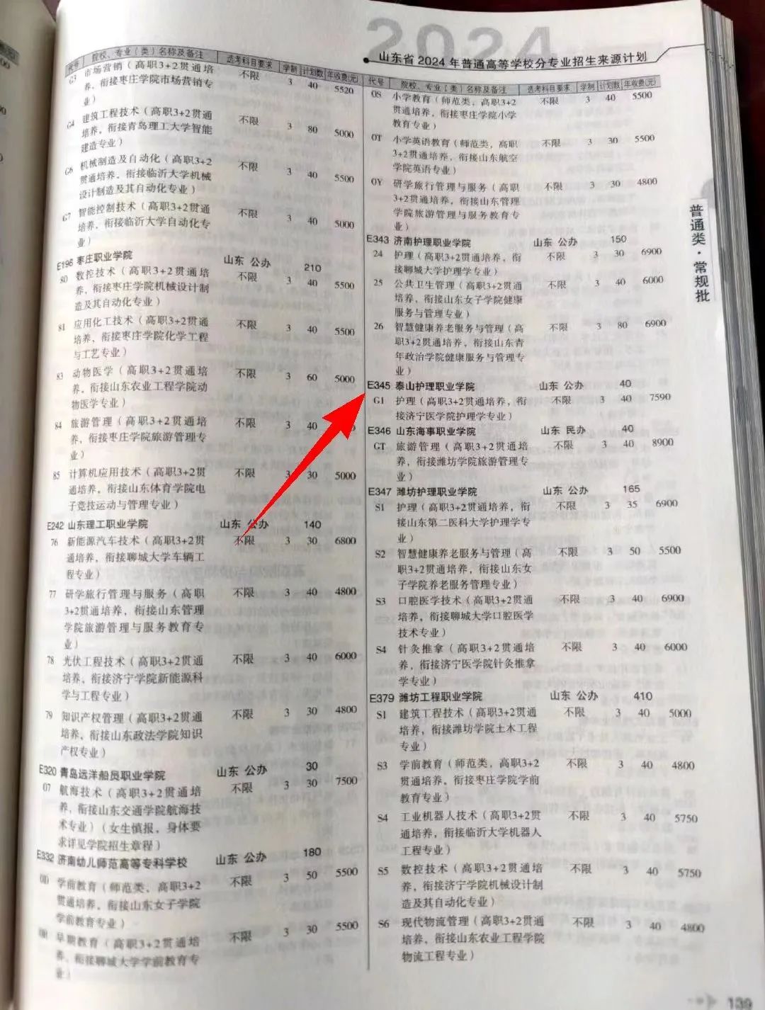 泰山护理职业学院山东省报考代码:E345泰山护理职业学院2024年山东省各专业志愿填报代号