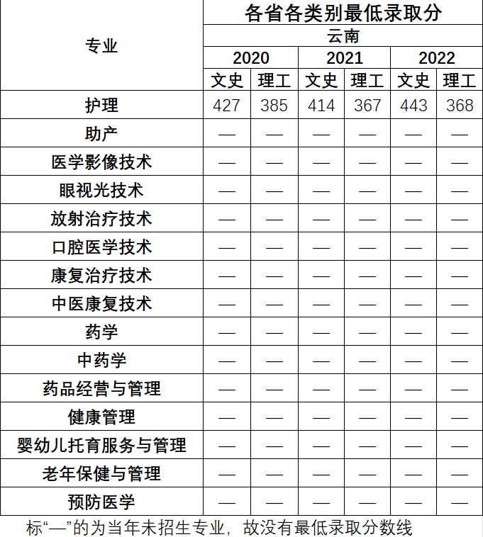 预防医学、护理、助产、医学影像技术、口腔医学技术、放射治疗技术、眼视光技术、康复治疗技术、中医康复技术、药学、中药学、药品经营与管理、健康管理、婴幼儿托育服务与管理、老年保健与管理。