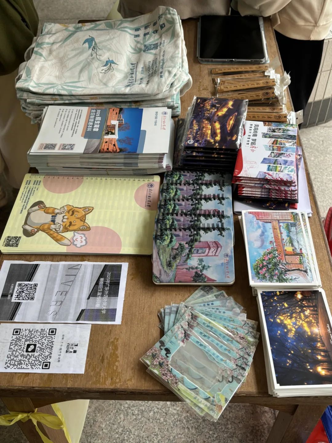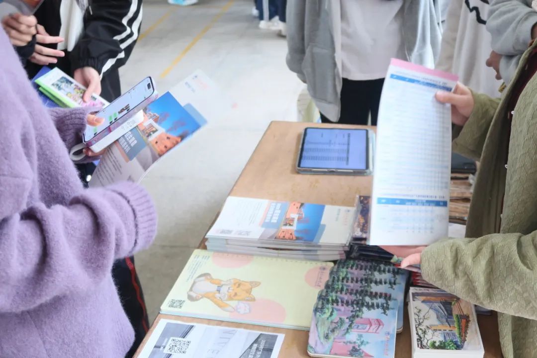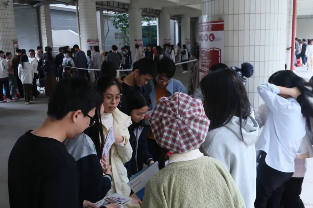 在摊宣环节,我们准备了丰富的宣传物料。学弟学妹们纷纷驻足,有的认真翻阅资料,有的则向我们提问,我们安排了来自不同专业的同学驻守摊位,针对不同选科,不同专业的疑问进行解答,并结合自己的亲身经历,分享在广外的学习生活点滴。