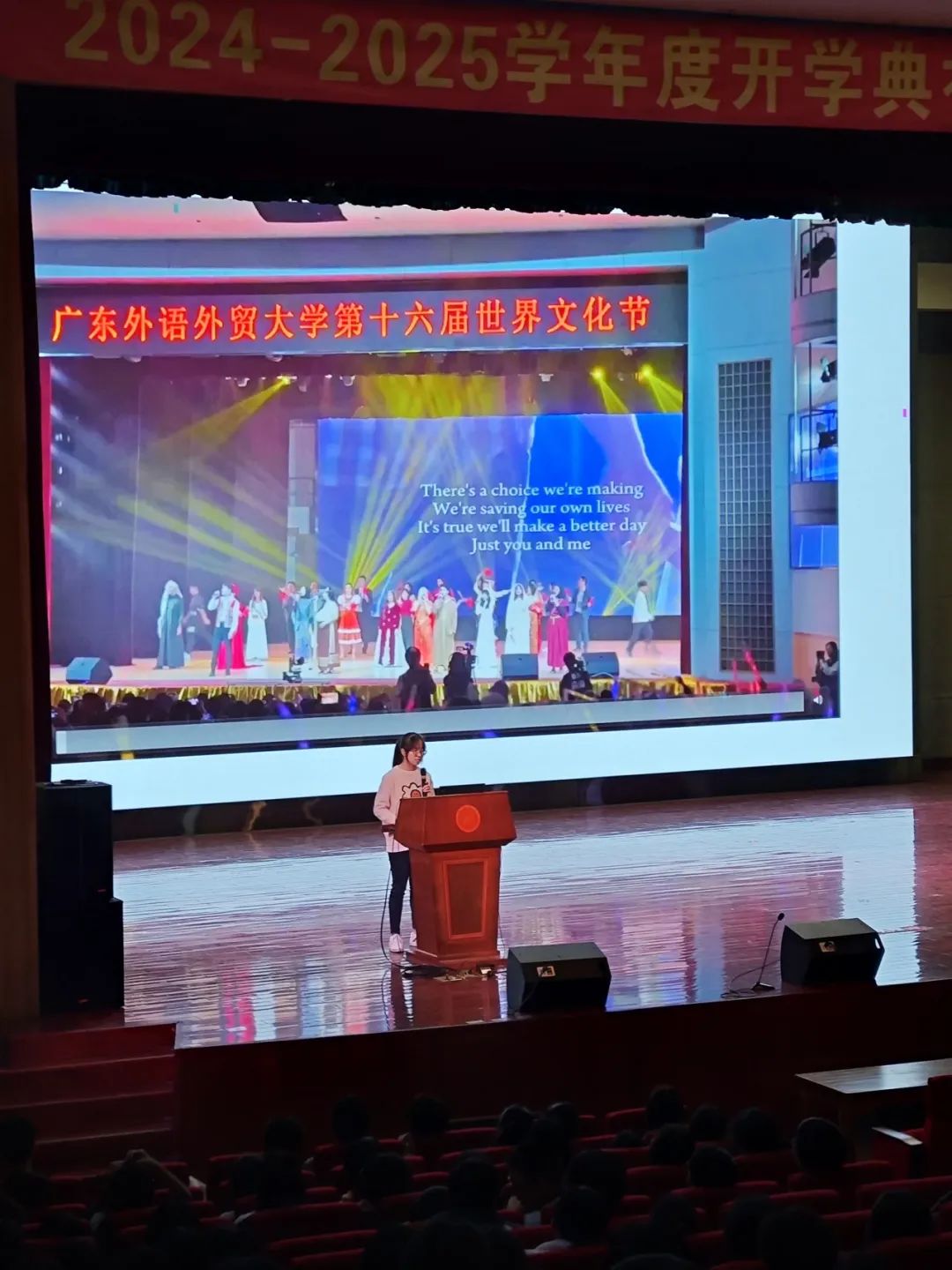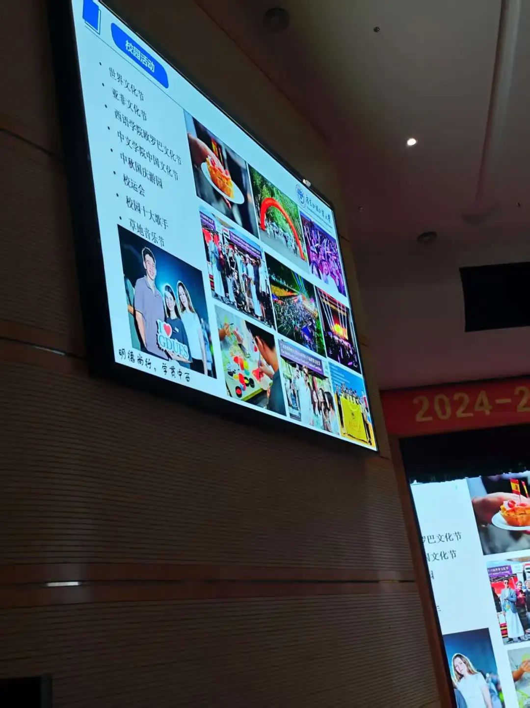 为了让宣讲更加生动有趣,我们还特意穿插了世界文化节的现场视频,展示了广外的校园文化和优美的校园景色。