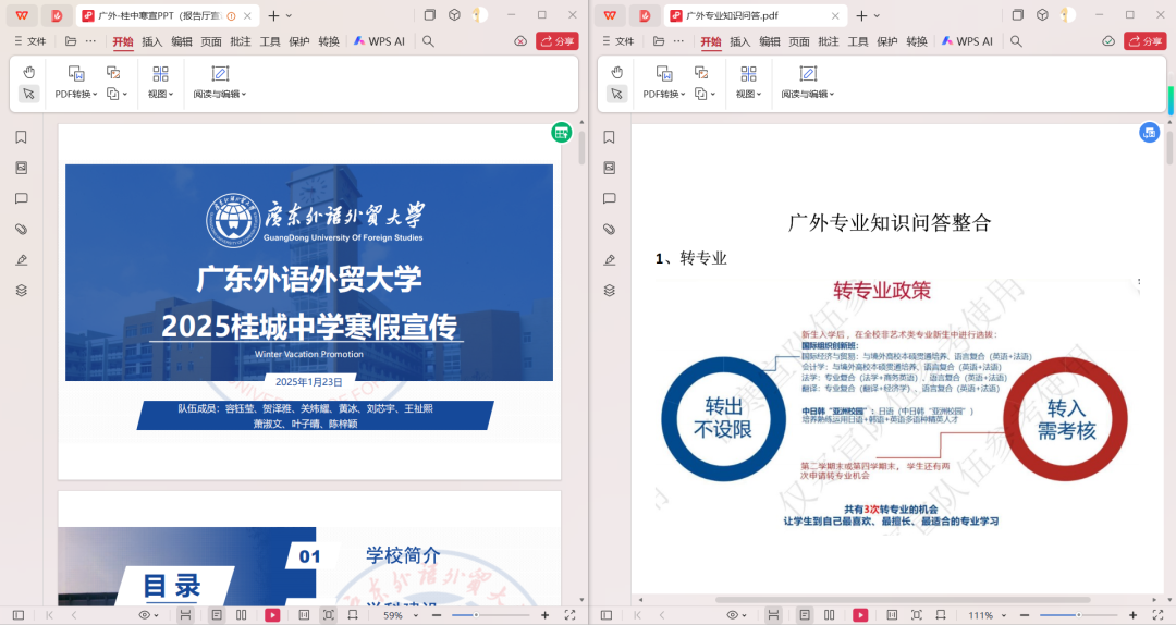 此外,我们还用生动的语言、翔实的数据介绍了广外的优质教学资源、双学士学位项目建设、优美的校园环境以及丰富多彩的校园文化活动。