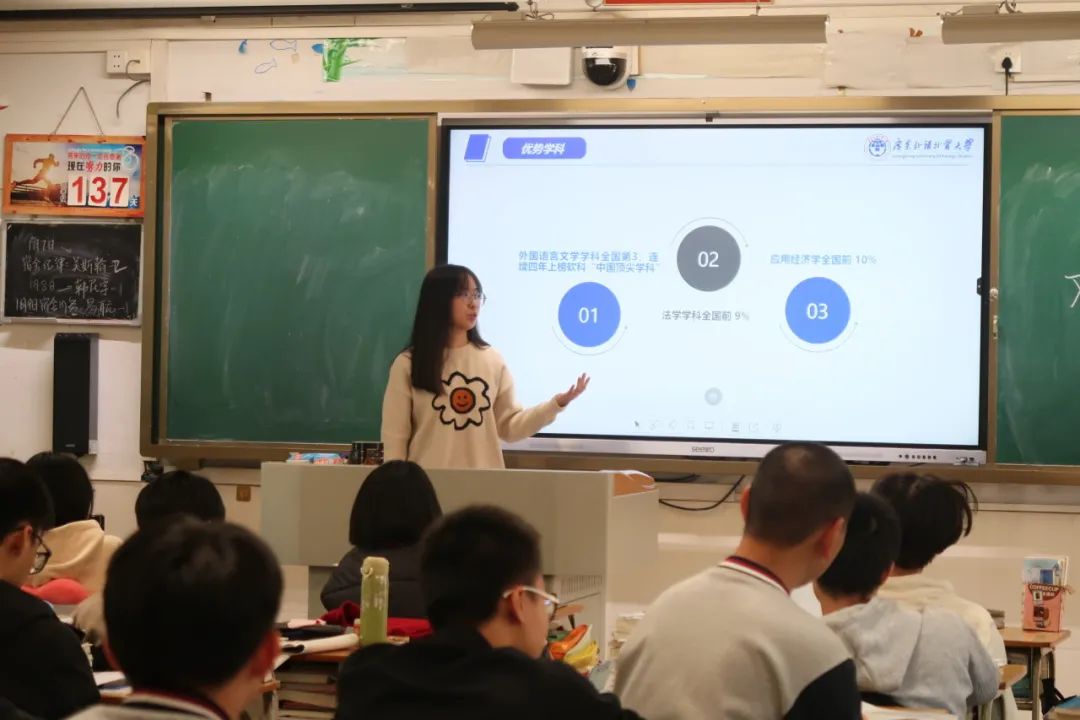 首先非常感谢学姐的回校宣讲!其实高三生目前对于大学的了解甚少。而学姐的宣讲就可以让我们了解了广外的情况。学姐宣传的表现力也特别好,让宣讲充满亮点。