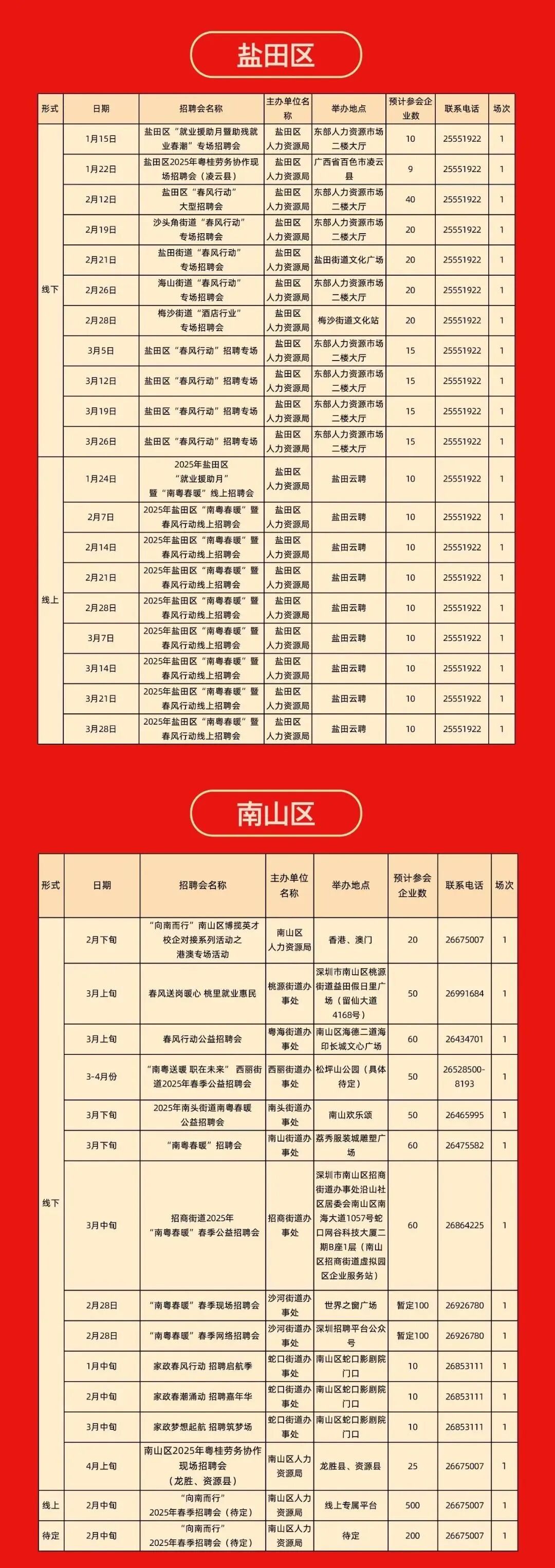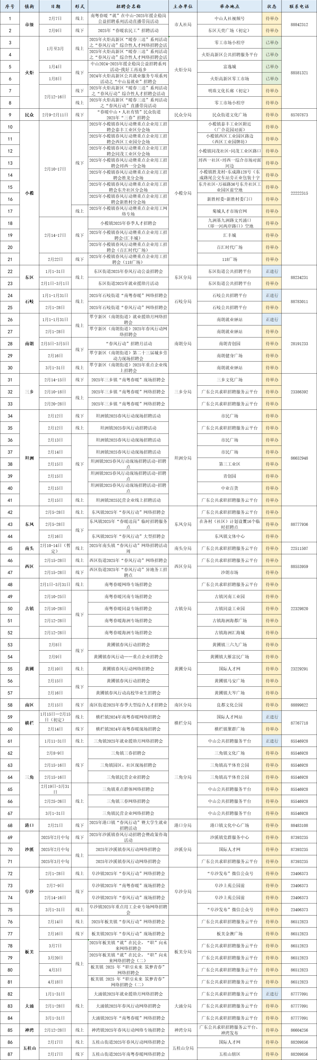 自2月7日起中山各镇街将举办多达240场招聘活动,详情如下: