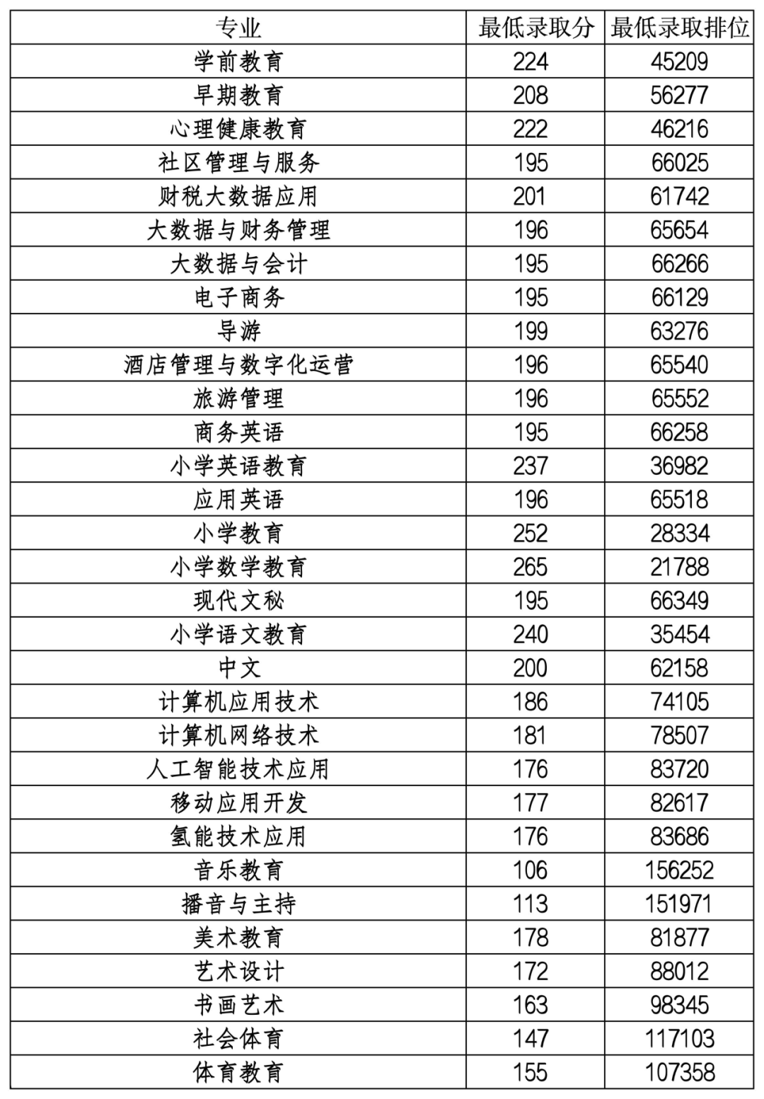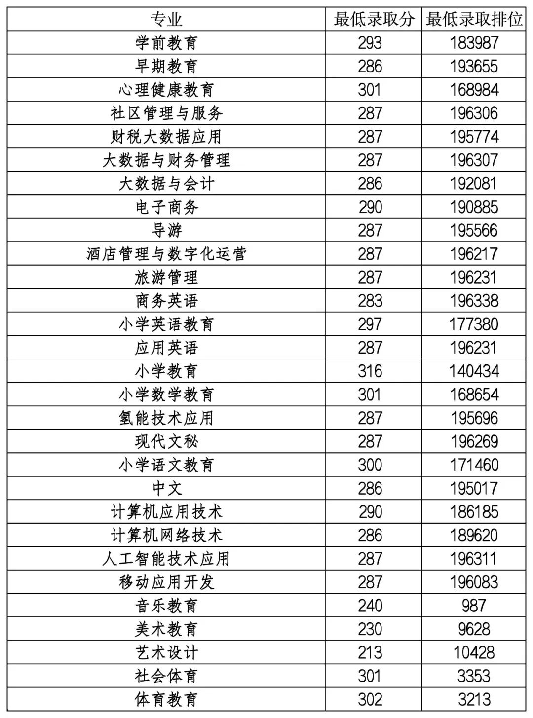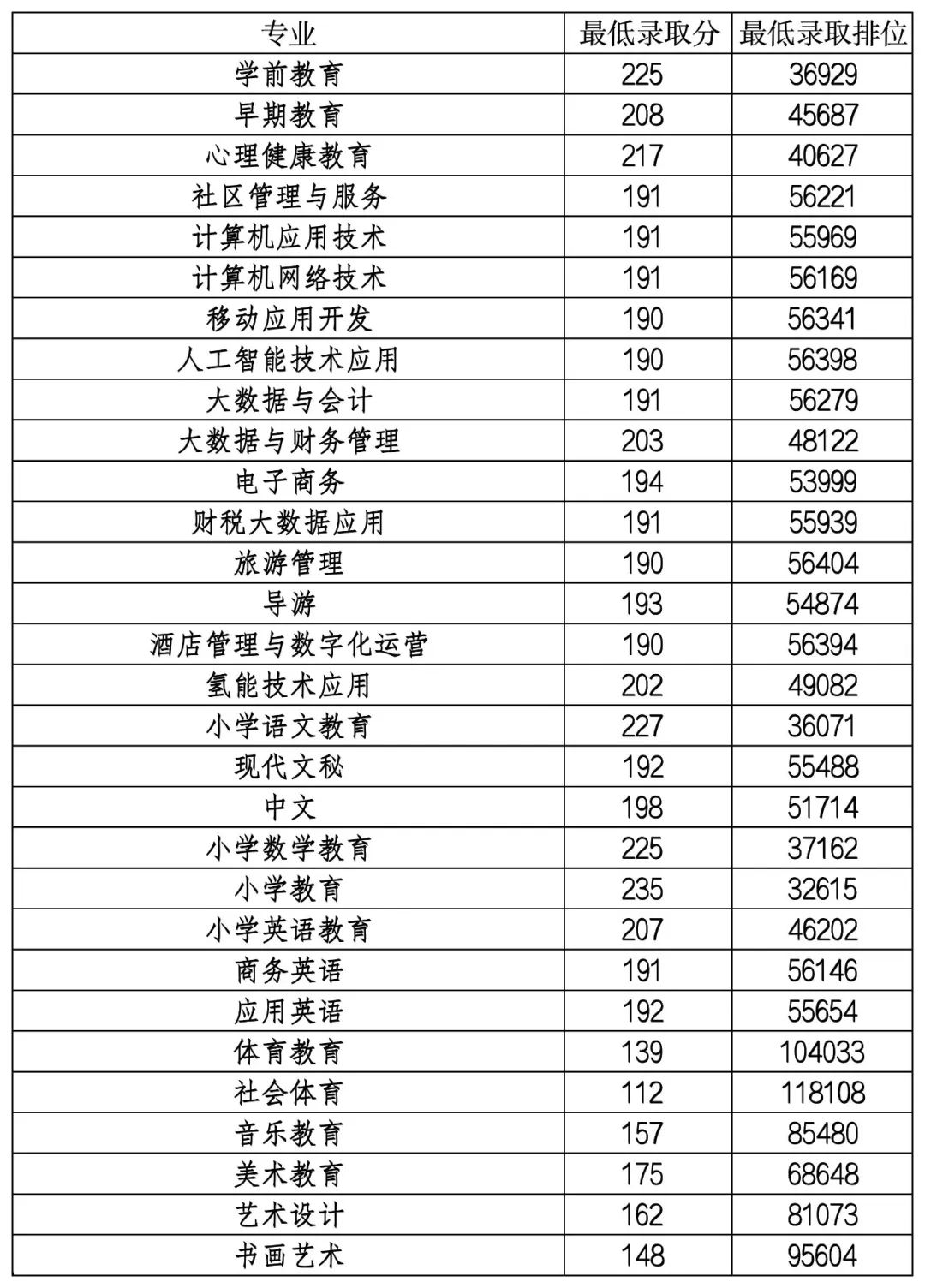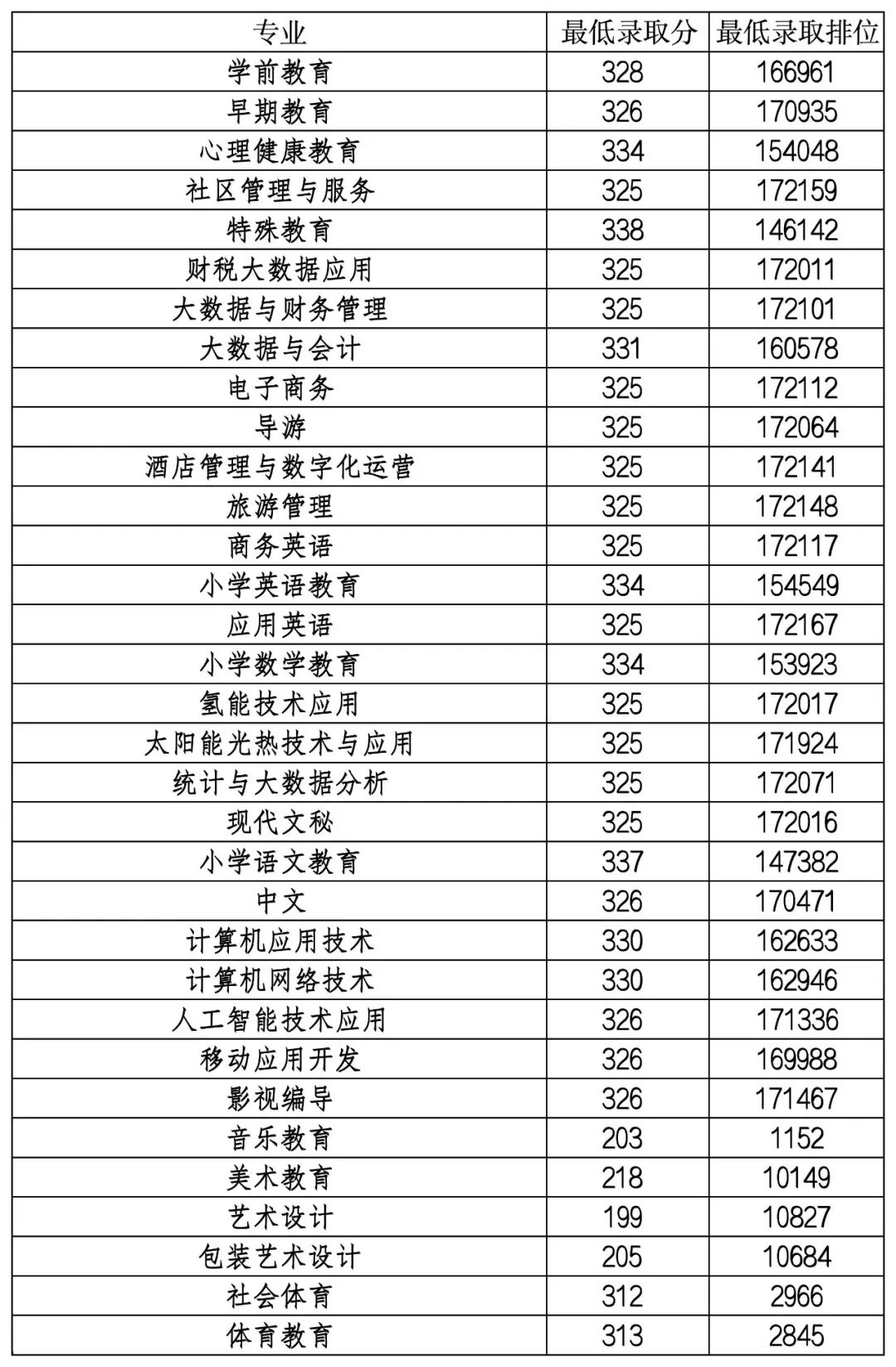 为了帮助考生更好的填报我校志愿,现将我校往年春季高考“3+证书类”、“学考类”各专业录取最低分及排位情况提供给各位考生参考: