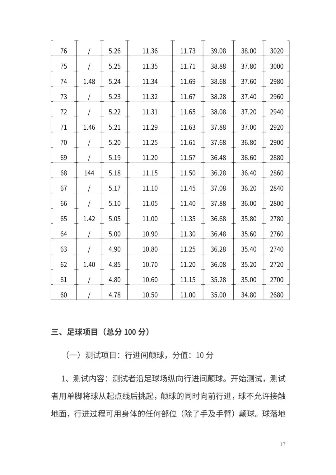 (二)综合成绩计算方式:综合成绩=文化素质测试成绩+专项测试成绩。文化素质测试总分为300分,专项测试成绩总分为300分(专项测试现场评分按百分制评定,再乘以3计算出专项测试成绩计入综合成绩)。