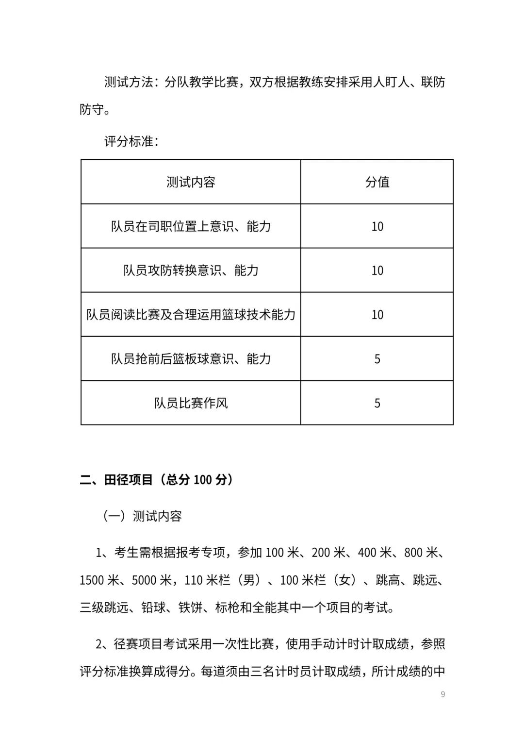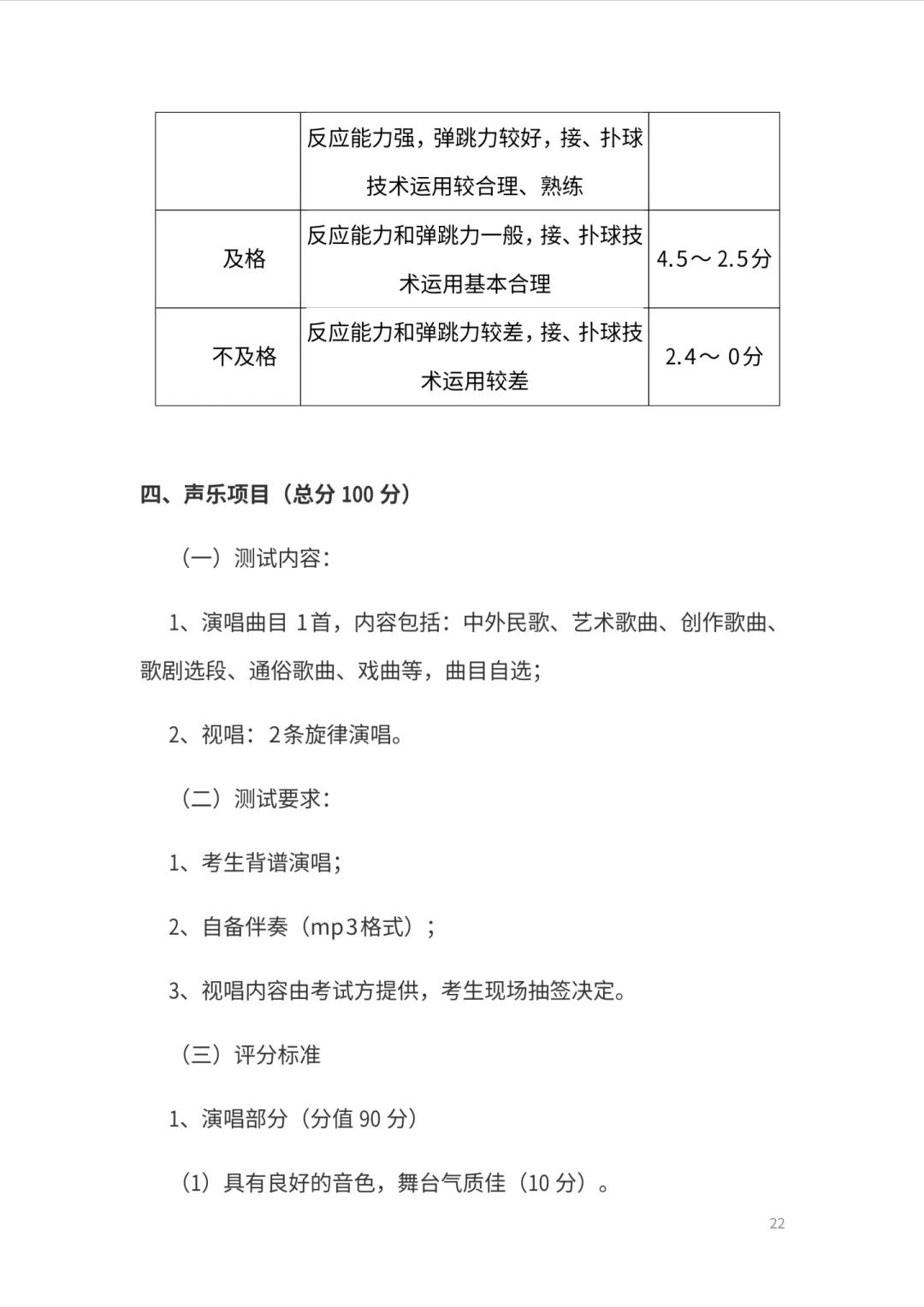 (一)专项测试现场评分按百分制评定,我校将根据计划数的1.5倍确定专项测试合格标准,取得合格资格的考生参与后续录取,未取得合格资格的考生不能录取到特长生。