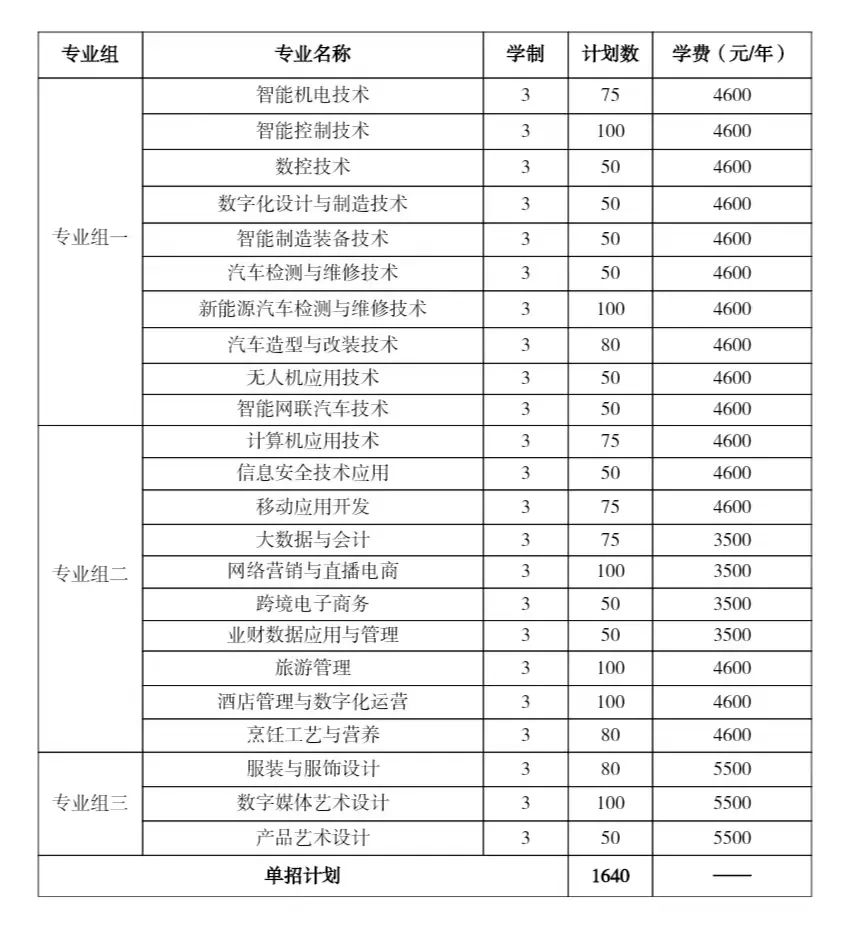 第十三条我校2025年单招总计划数为1640人,其中包含单列计划的退役军人10人、艺术体育特长生18人。本校2025年实际单招专业及分专业招生计划,以省教育考试院公布的为准。各专业最终学费标准以2025年湖南省物价主管部门审核为准。