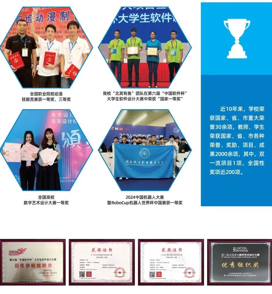 办学以来,学校坚持社会主义办学方向,全面贯彻党的教育方针,坚持立德树人,扎根湖湘大地办职业教育,十余年艰苦奋斗、砥砺前行,取得了显著办学成绩。学校先后荣获教育部人才培养工作评估合格高校、湖南省职业教育教学管理工作先进单位、湖南省示范性(骨干)高职院校、湖南省平安高校、湖南省文明高校、湖南省普通高校毕业生就业创业工作“一把手工程”督查优秀单位、湖南省高等职业教育一流特色专业群建设单位、湖南省思想政治工作优秀集体等30余项国家、省、市重大荣誉,教师、学生荣获国家、省、市各项奖励、荣誉、成果2000余项,其中,全国性奖励近200项。