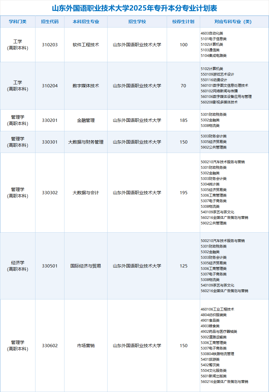山东外国语职业技术大学前身是山东外国语职业学院,2018年12月,学校经教育部批准升格为本科层次职业学校。2019年5月,学校更名为“山东外国语职业技术大学”。2023年1月,增列为职业本科教育学士学位授予单位。学校始终坚持和加强党的领导,全面贯彻党的教育方针,秉承“质量立校、特色发展、产教融合、服务社会”的办学理念,践行“脚踏实地、放眼世界”的校训,坚持立德树人,大力培养高层次技术技能人才,服务区域经济社会高质量发展,取得了显著的成绩。学校是中宣部、教育部在山东省确立的《习近平谈治国理政》多语种版本进高校、进教材、进课堂“三进”唯一试点学校,获批“全国党建工作样板支部培育创建单位”、教育部“学生综合素质训练基地”,是“山东省红色文化传承示范校”“山东省绿色学校”“山东省新时代高校党建工作示范高校培育创建单位”“山东省具有较高国际化水平的职业学校培育单位”,是“中国国际教育交流协会”等7个国际组织的成员单位,荣获“全国高职院校国际影响力50强”“山东省五一劳动奖状”“山东省校企一体化合作办学示范院校和企业”等荣誉。