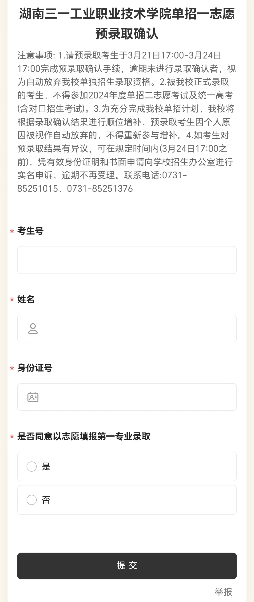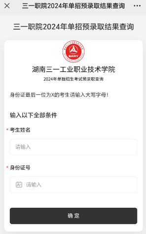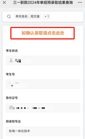湖南三一工业职业技术学院2024年单招一志愿预录取确认指南